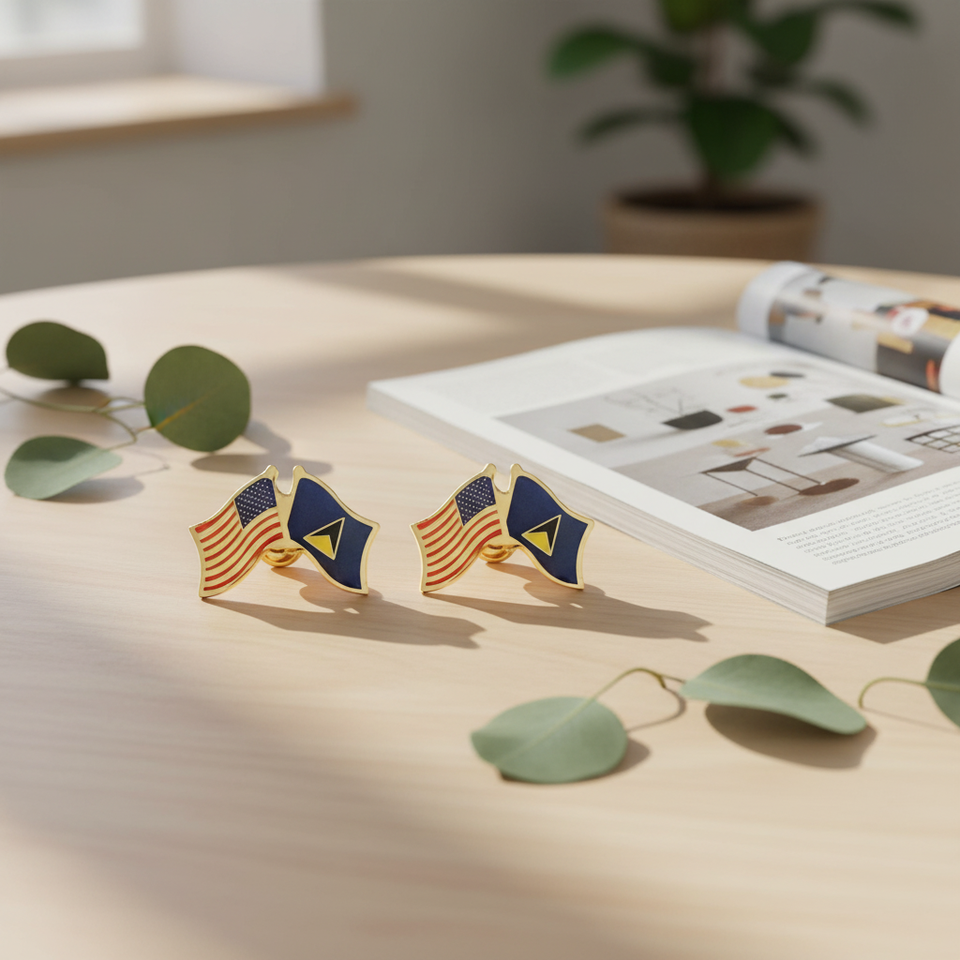 GREPAS GIFTS Épinglette de revers 1,25 pouce avec drapeaux croisés des États-Unis et de Sainte-Lucie