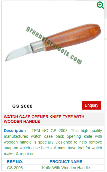 GS 2008 Ouvreur de boîtier de montre en acier avec manche en bois Logo personnalisé Type de couteau Outils de bijouterie et de bijouterie Métal et matière plastique