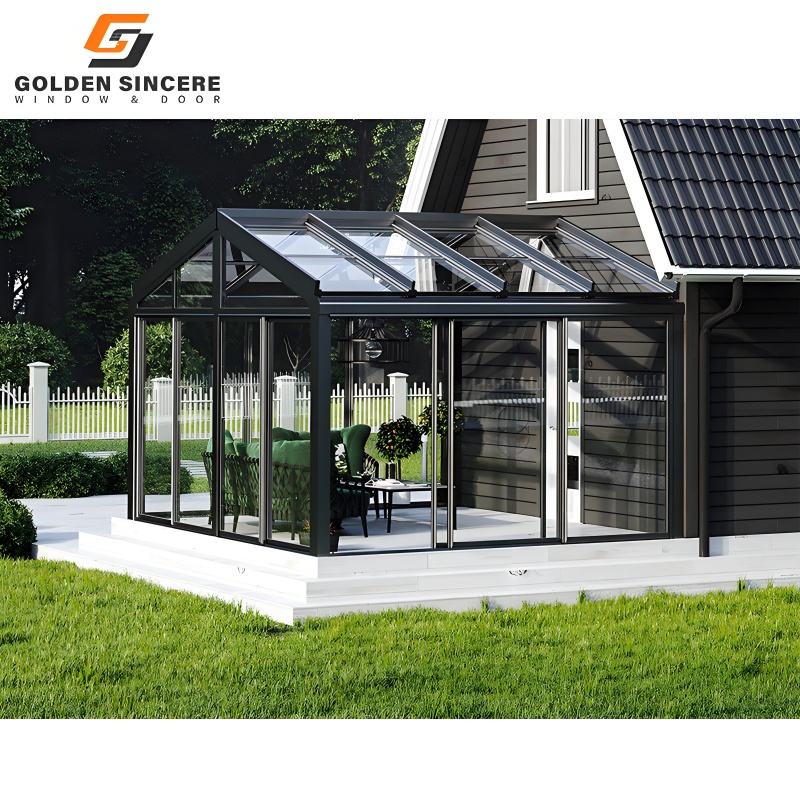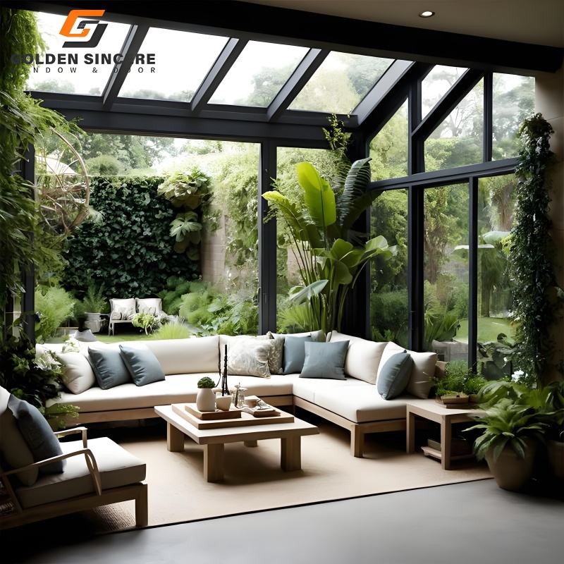 Véranda en verre bi-pliable GS pour le jardin avec une large ouverture et une vue dégagée