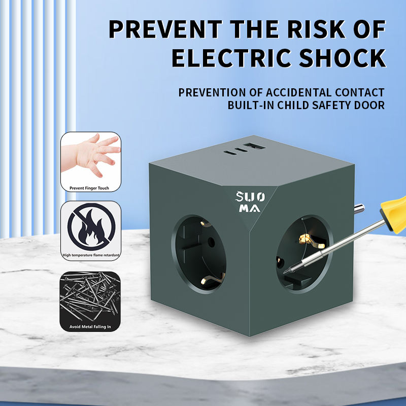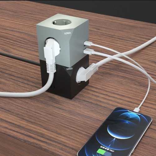 GS Modern EU Cube Multiprise avec 3 Prises 2 Ports USB a Prise électrique multi-prise standard européenne Prise d'extension PD20W