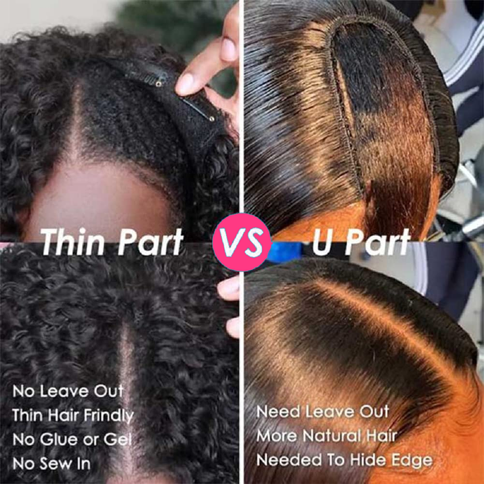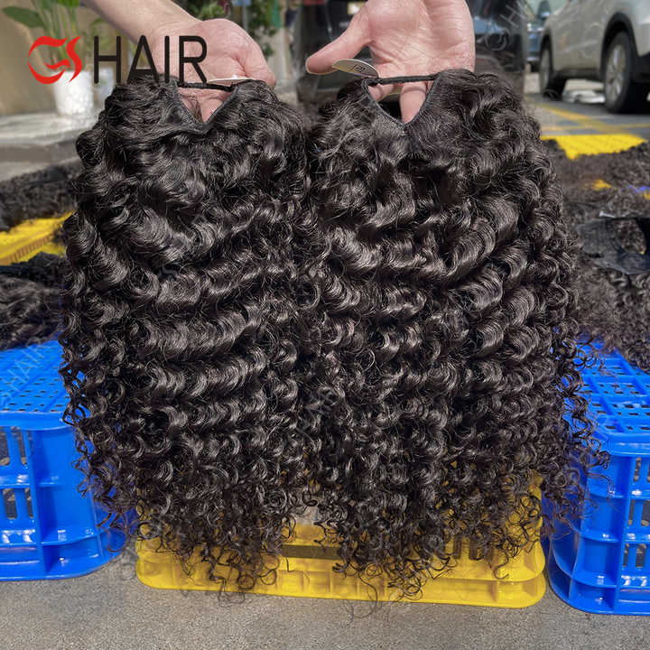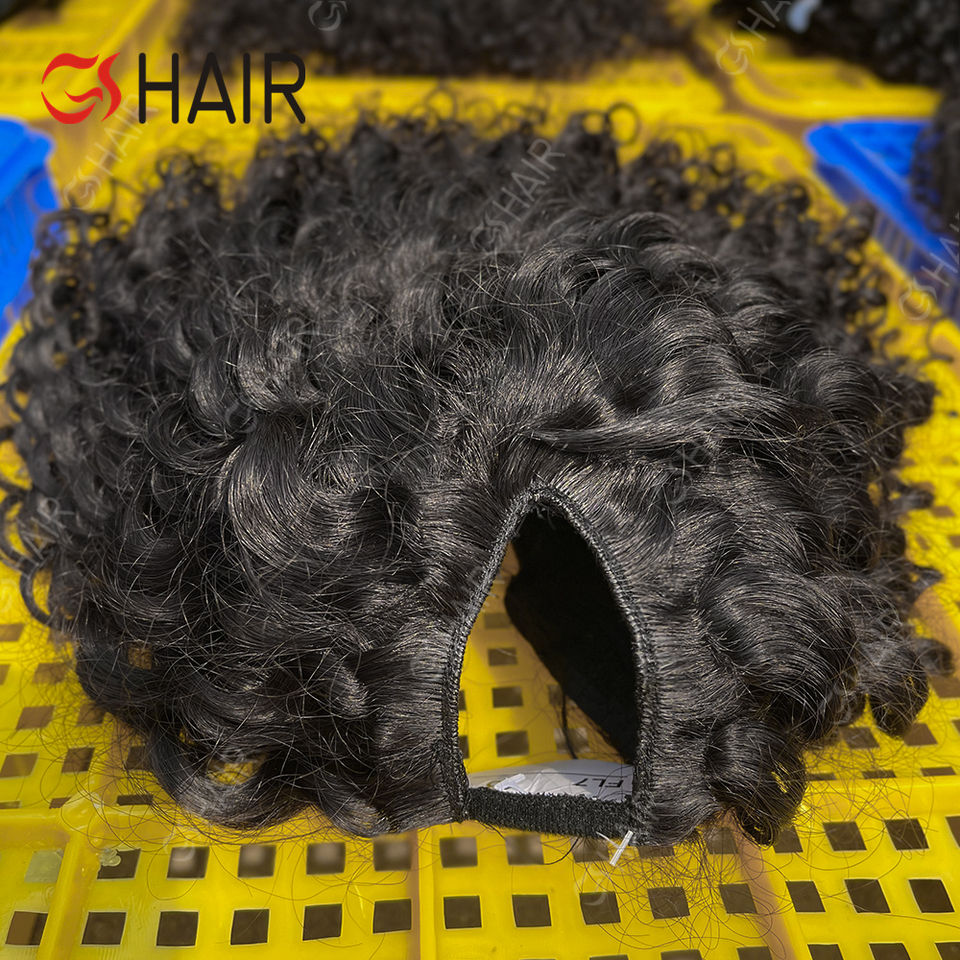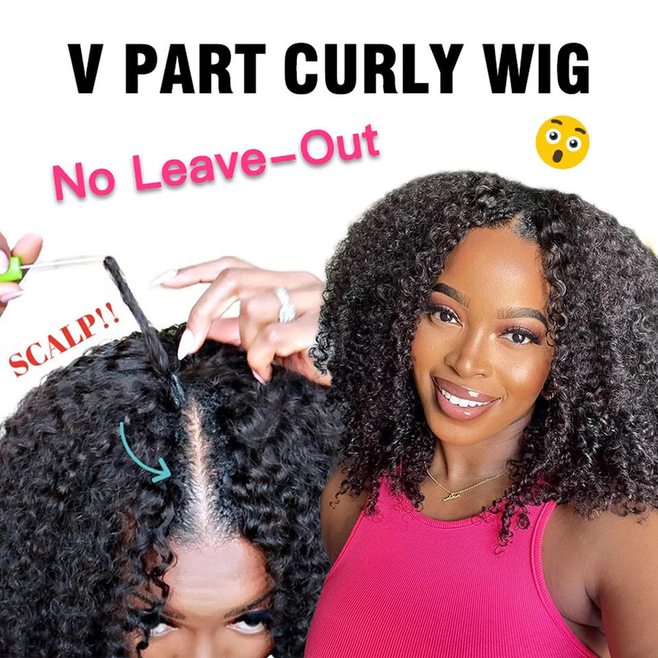 GS Wholesale V Part Body Wave Perruque Cheveux humains, None Lace Brazilian Afro Deep Wave Perruque pour femmes noires Clip in Half Perruque sans colle