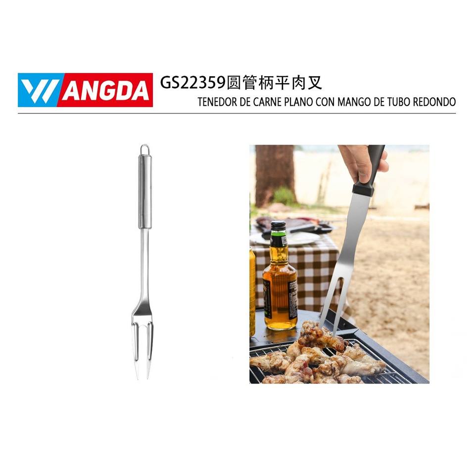 GS22359 Fourchette à viande plate avec manche rond pour outils de barbecue