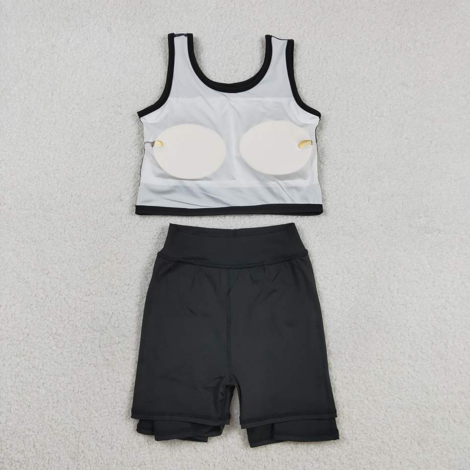 GSD1982 RTS Ensemble d'été sans manches pour petite fille, jupe noire unie imprimée, tenues pour enfants, vente en gros