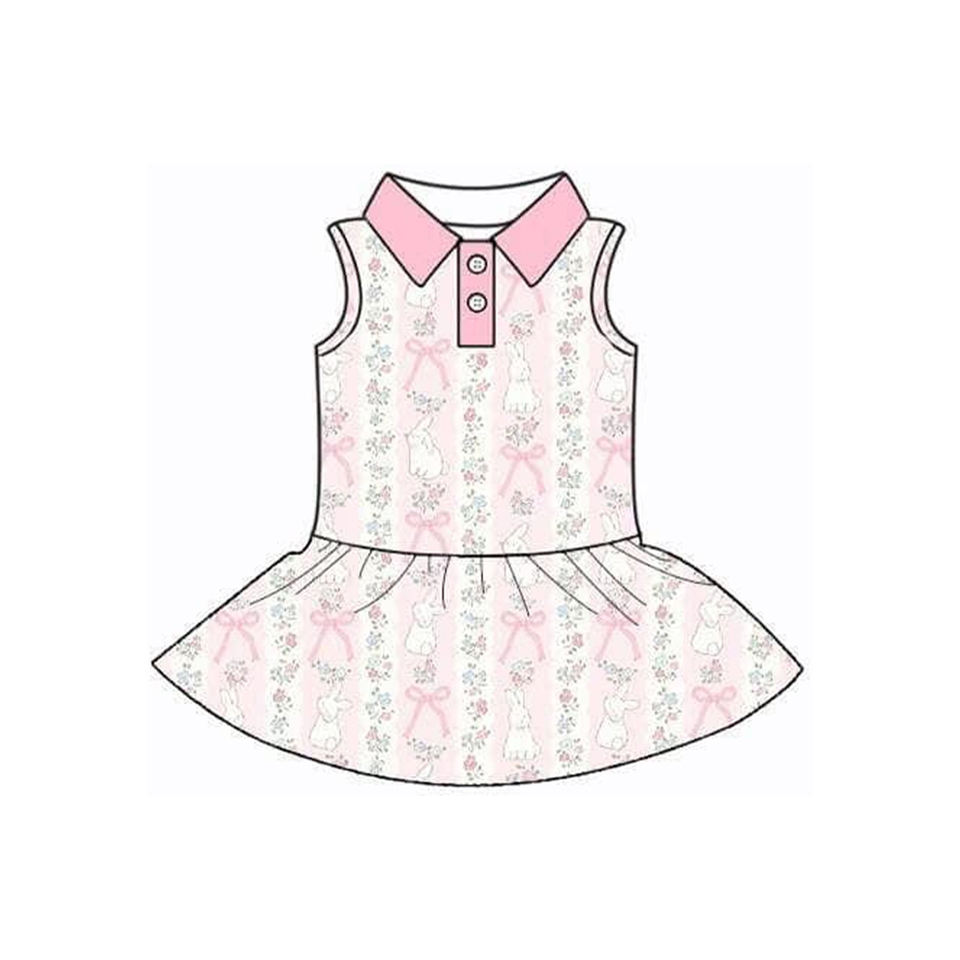 GSD3516 Custom Baby Girl Children Summer Knee-length pink Flowers Bows Print Sleeveless Dress Wholesale Yoga Dress