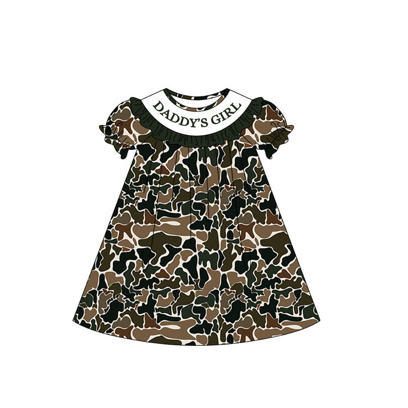 Robe d'été personnalisée pour bébé fille GSD3544, camouflage cerf, robe à manches bouffantes « Daddy's Girl », vente en gros