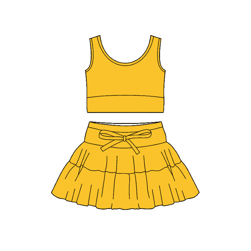 GSD3620 Custom Little Girl Boutique summer Outfits black solid Yoga Skirt Wholesale Toddler Child Clothing Fabric Skirt Set