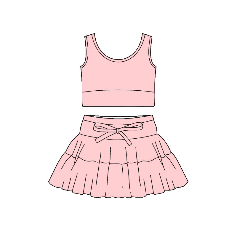 GSD3623 Custom Little Girl Boutique summer Outfits navy solid Yoga Skirt Wholesale Toddler Child Clothing Fabric Skirt Set
