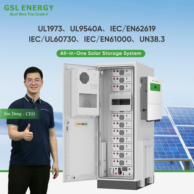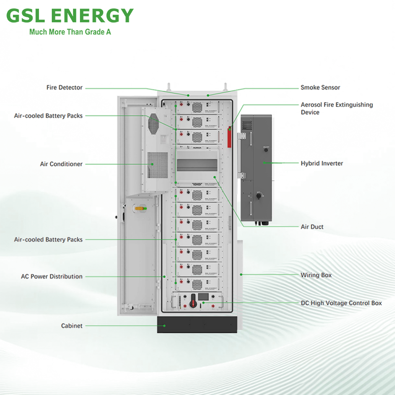 Système de stockage d'énergie hors réseau industriel et commercial GSL ENERGY tout-en-un 40,96 KWh 61,44 KWh, batterie Lifepo4, refroidissement par air, BESS