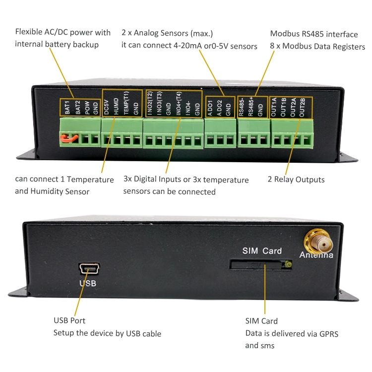 Surveillance de l'état de la température et de l'alimentation GSM/4G, alarme de température GSM, alarme SMS, relais SMS, enregistreur de température