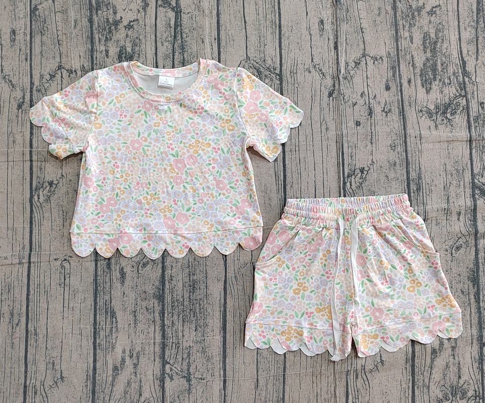 GSSO3273 RTS Little Active Girl, tenues imprimées de fleurs colorées, vente en gros pour enfants, ensemble à manches courtes pour filles