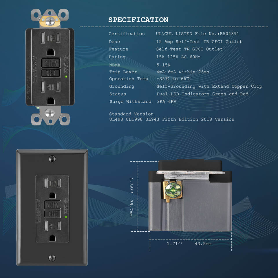 GT Amérique du Nord décorateurs muraux gfi prise TV murale prise universelle 110v 120v 125v 15a prise protégée gfci