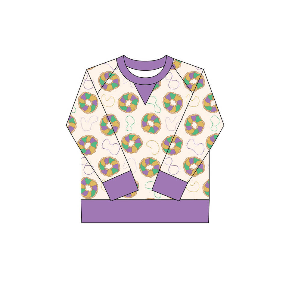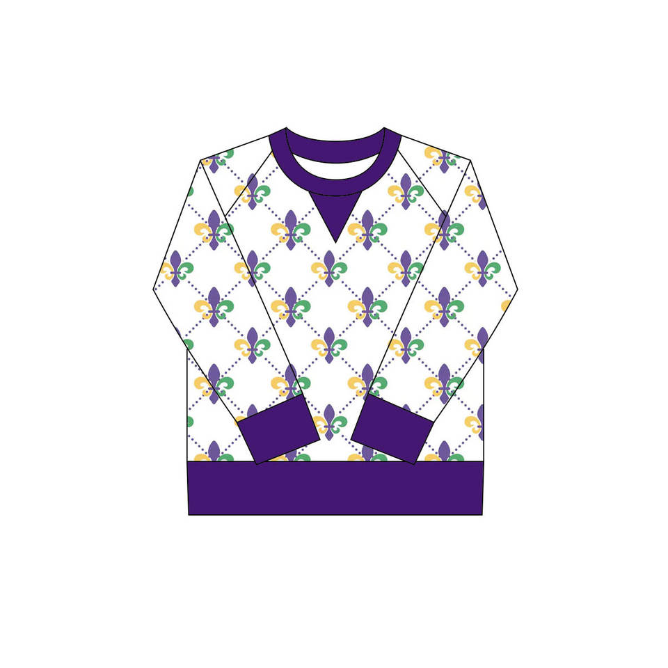 GT1265 Custom yellow mardi gras purple green yellow plaid top baby girl Boutique top kids toddler child clothing long sleeve set