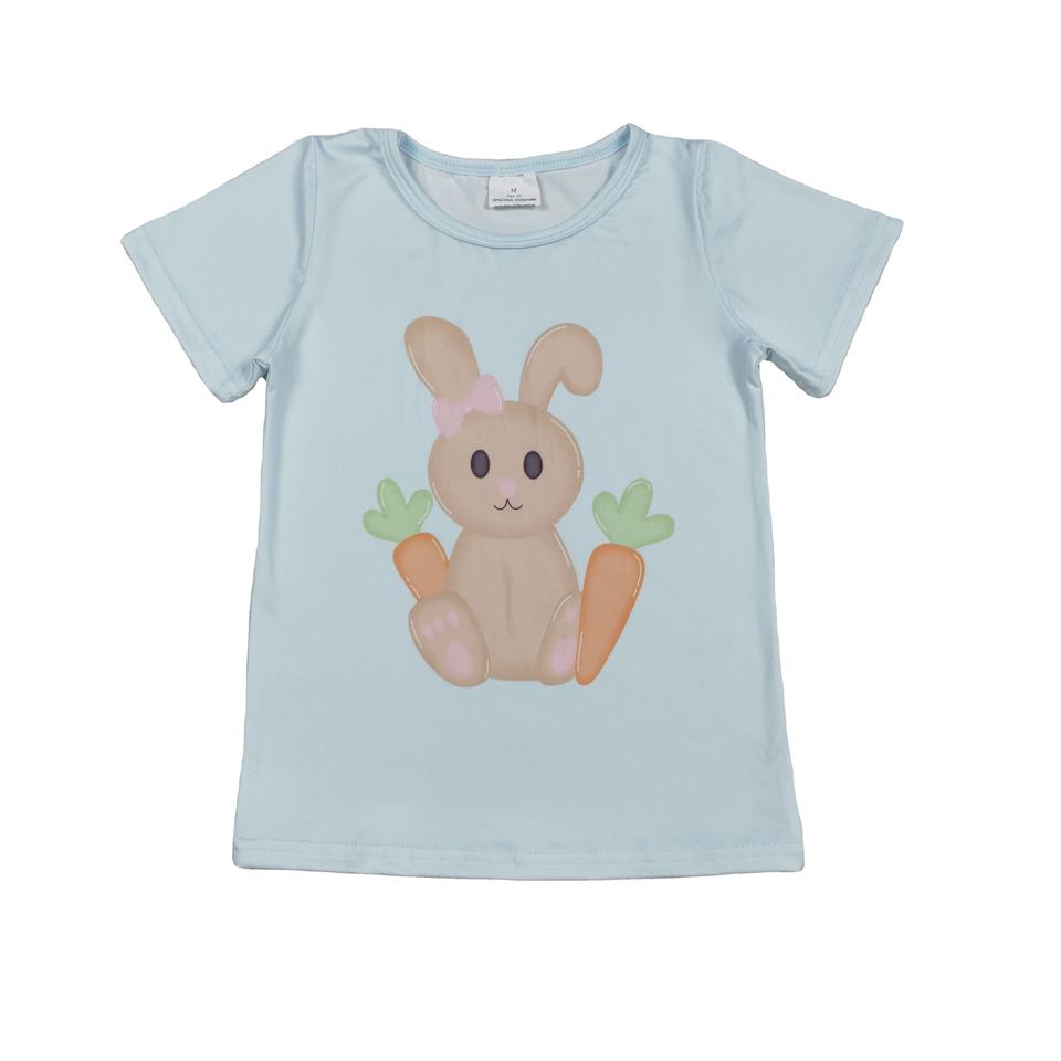 GT1395 RTS top baby girl adorable Boutique Blue easter bunny carrot print top kids toddler child clothing