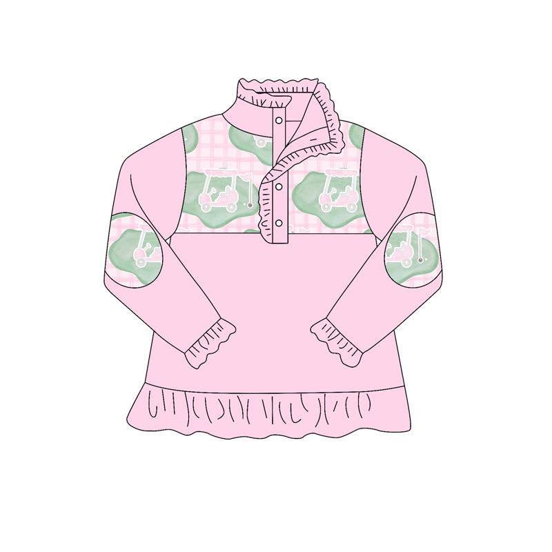 GT1403 CUSTOM top baby girl adorable Boutique Pink plaid print top kids child clothing zipper set