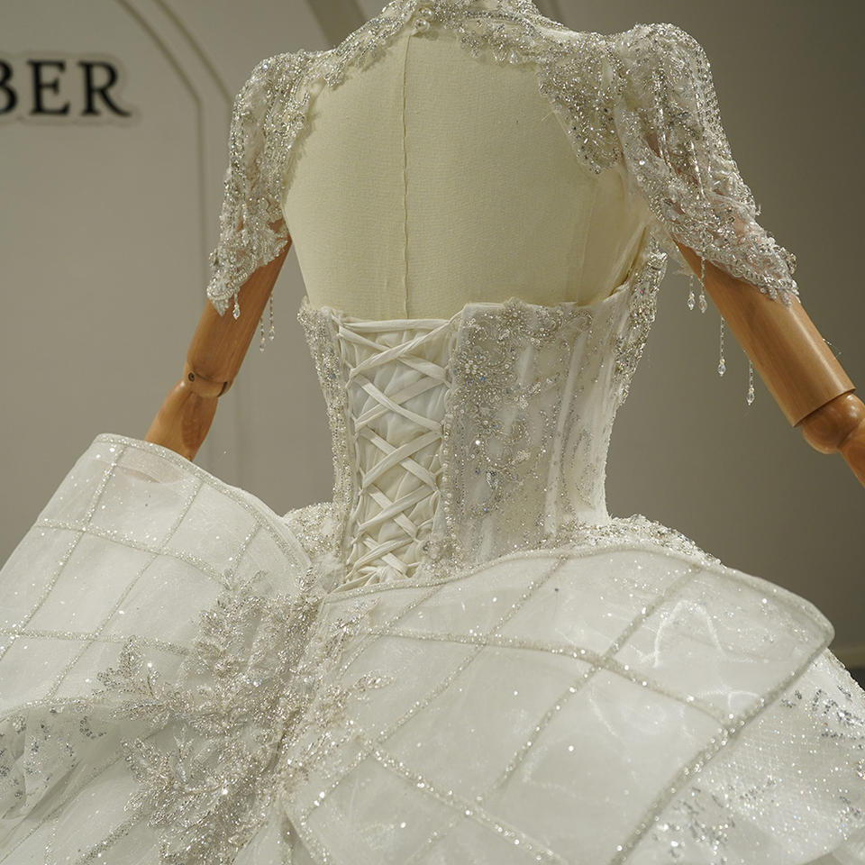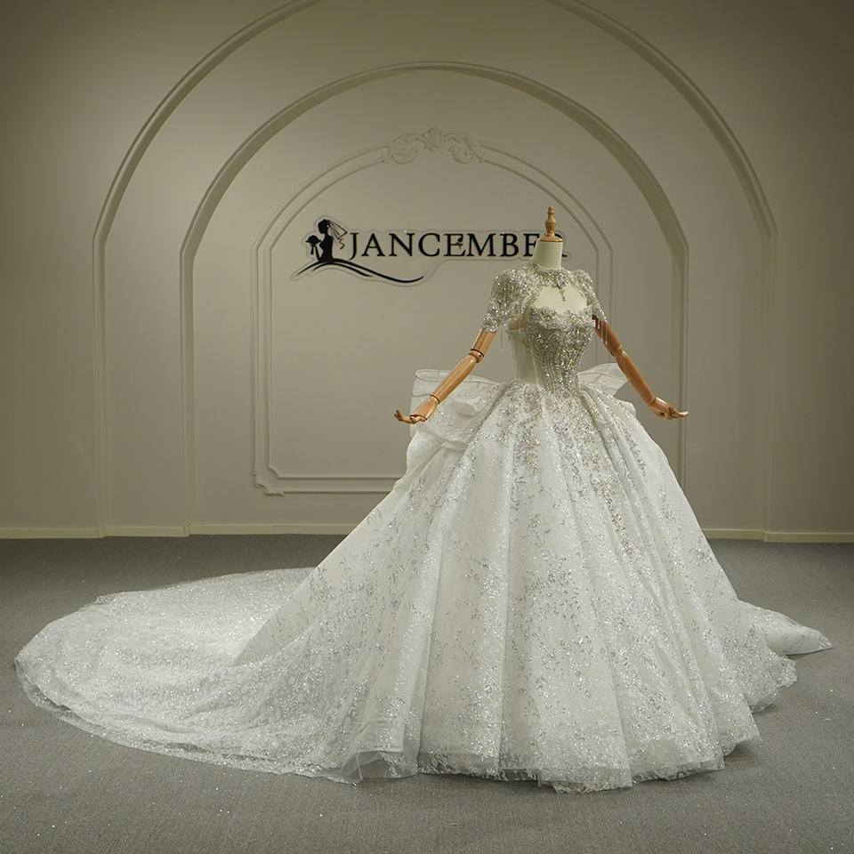 GT26053 Robe de mariée moderne style Princesse grande taille, en dentelle, à manches longues, décolleté cœur, traîne chapelle, coupe princesse