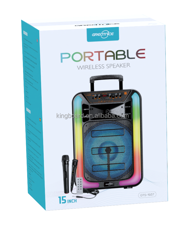 Enceinte portable sans fil GTS pour DJ, fête en plein air, multifonction, chariot avec TWS&FM&USB, 15 pouces, GTS-1937, prix d'usine