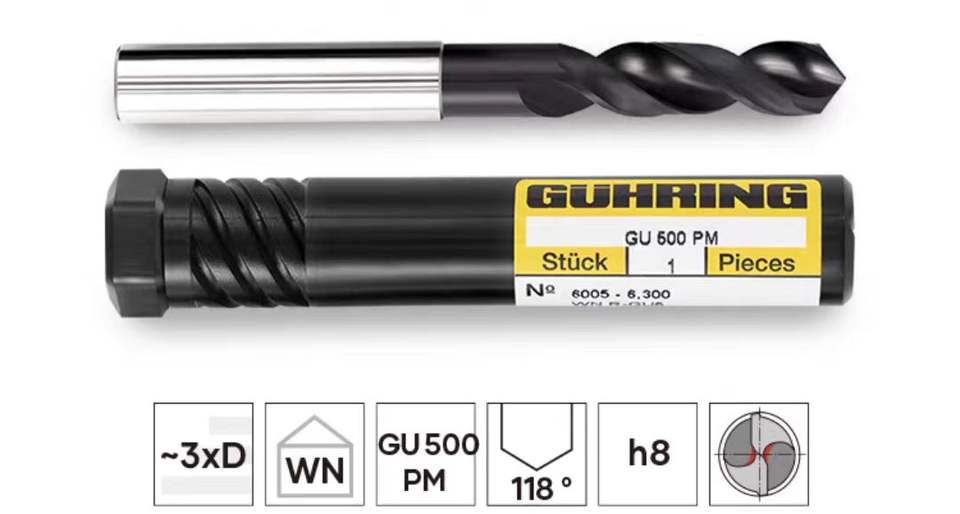 Foret à collier GUHRINGS en cobalt, traitement en poudre d'or, acier inoxydable, alliage spécial tungstène-titane, modèle de perçage long