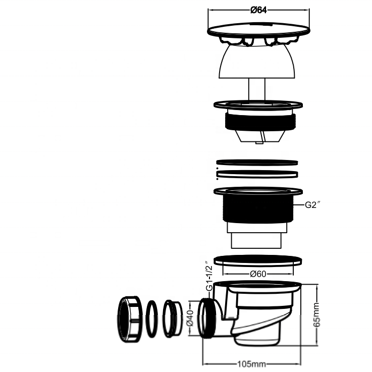 Taille:Trou de drainage de 50 mm, sortie de 40 mm
