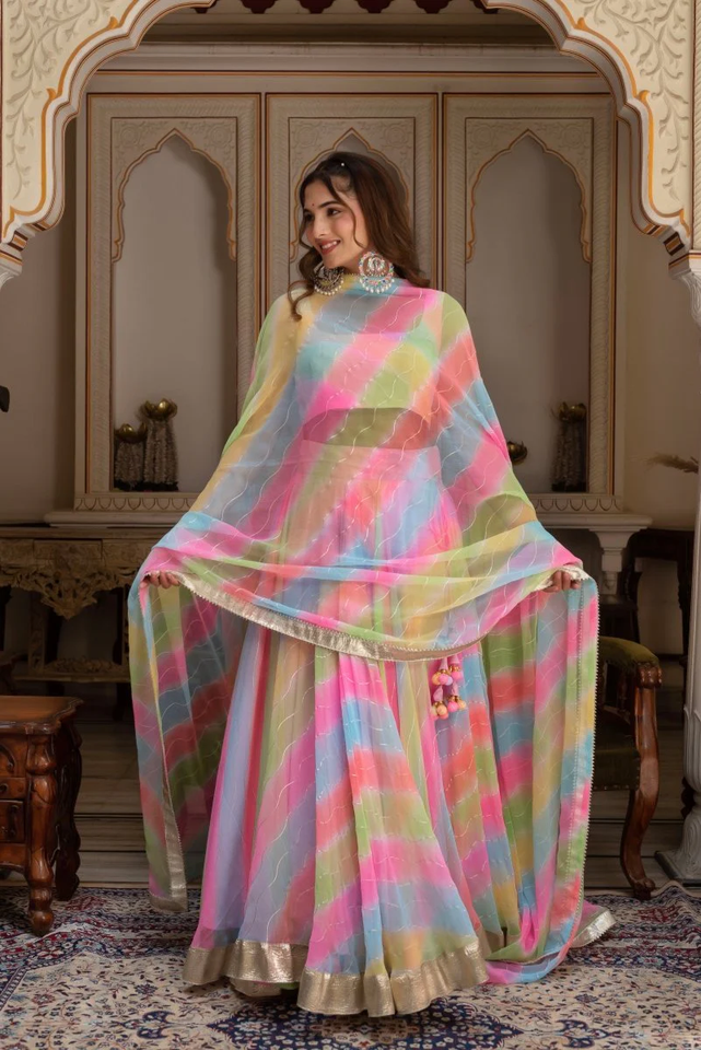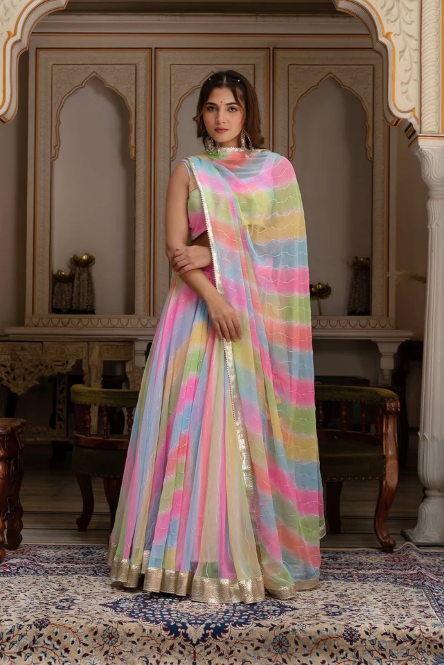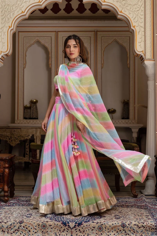 Product Name:LEHERIYA GEORGETTE GOTA PATTI LEHENGA SET