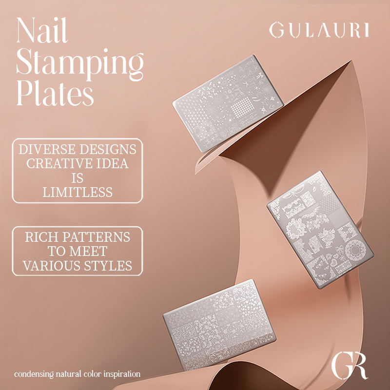 Plaques de dessin pour ongles GULAURI de haute qualité, plaques de tamponnage pour ongles, plaques en acier inoxydable de grande marque pour tampons à ongles