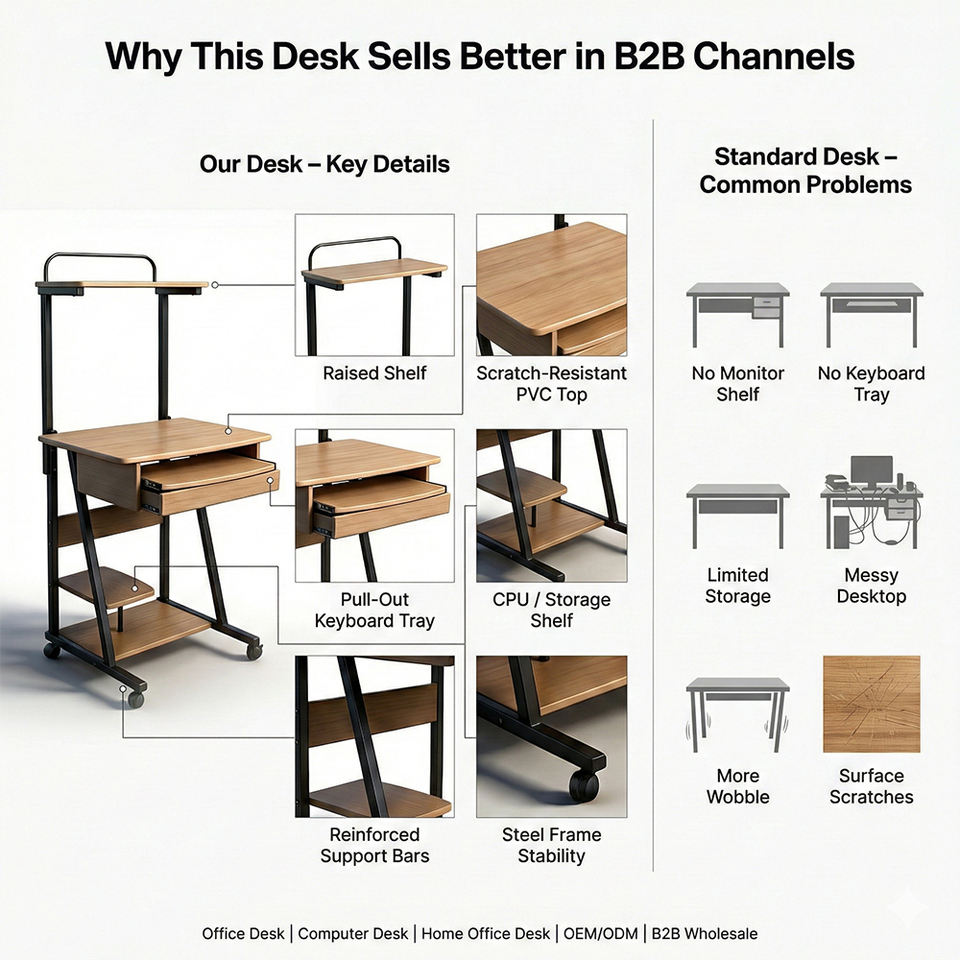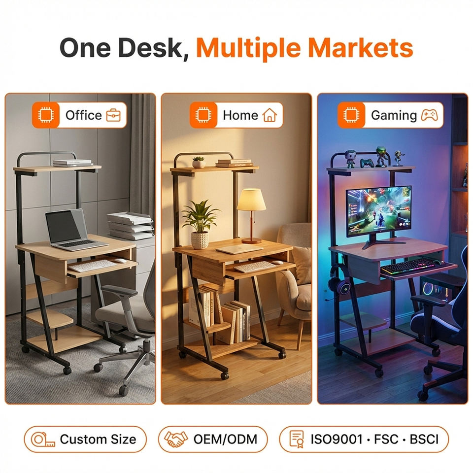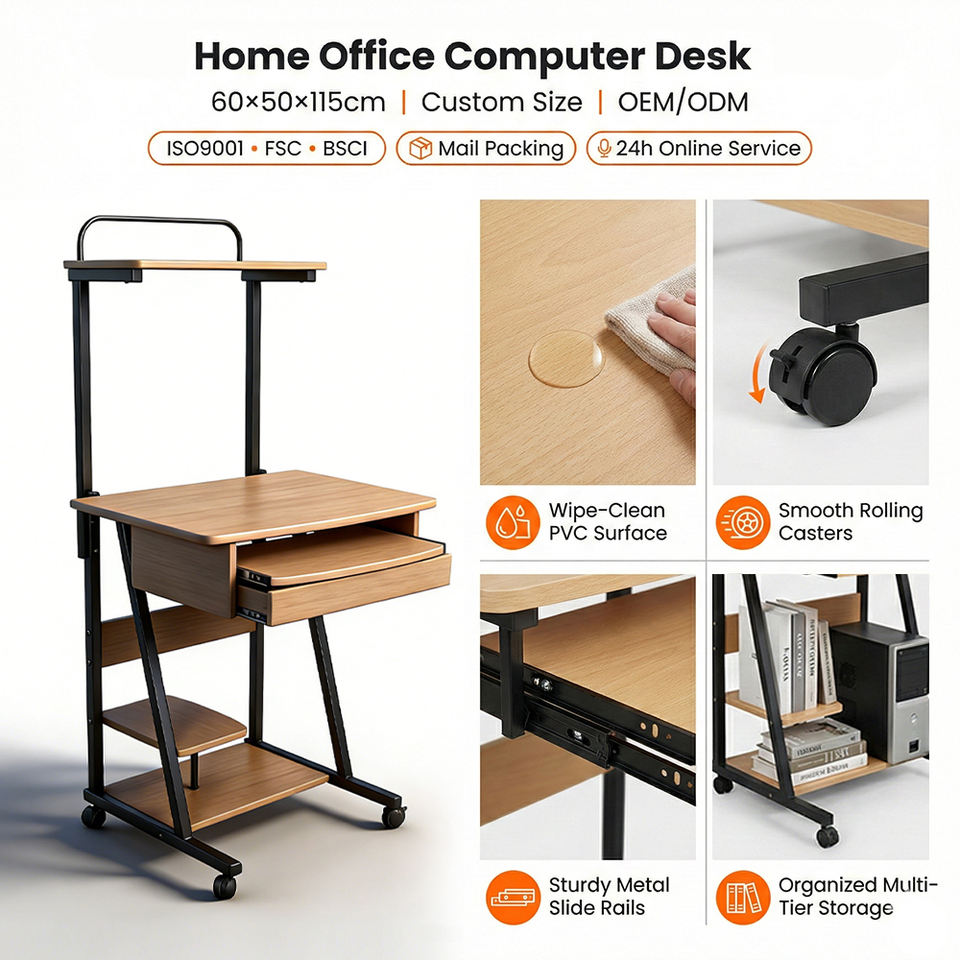 Bureau d'ordinateur mobile ergonomique GUOGE en PVC pour la maison et le bureau, avec étagère de rangement, table d'étude, bureau gain de place