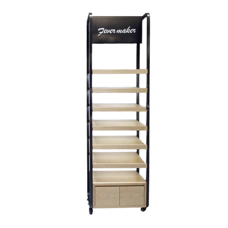 GUYA Custom Shop Présentoir à chapeaux autoportant classique en bois et métal thermolaqué, couleur personnalisable, avec étagère à niveaux pour l'affichage des chapeaux