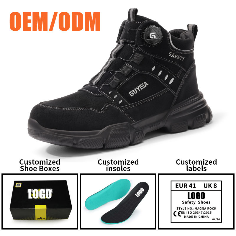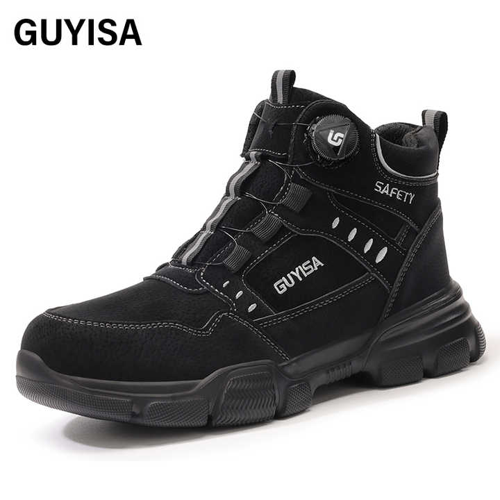 Chaussures de sécurité intelligentes GUYISA anti-écrasement et anti-perforation, légères, noires, résistantes à l'usure, confortables, avec bouton intelligent