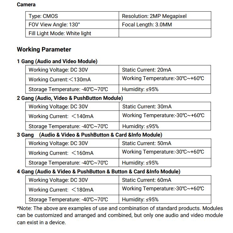 Nom du produit:Poste extérieur modulaire assemblé, version encastrée