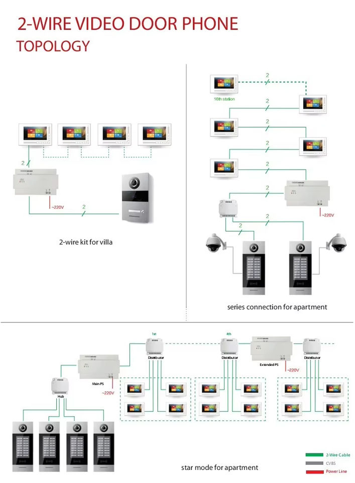 Système d'interphone vidéo GVS encastré 2 fils pour portier électronique, interphone d'entrée, sonnette vidéo pour appartement multiple et villa