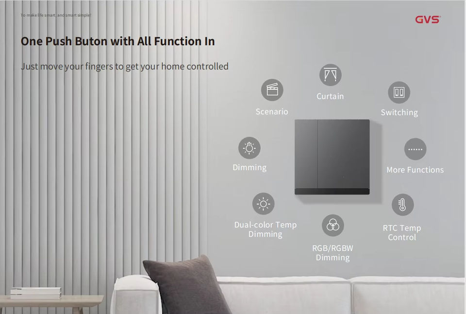 Interrupteur mural intelligent GVS KNX avec capteur de température intégré, automatisation multi-fonctions, interrupteurs muraux 2 voies
