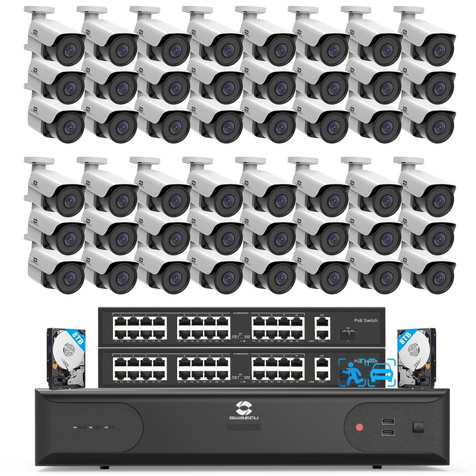 Système de surveillance par caméra de sécurité 4K à 64 canaux GWSECU, 48X 8Mp, caméra IP étanche de type bullet, système de caméra NVR commercial pour entreprises