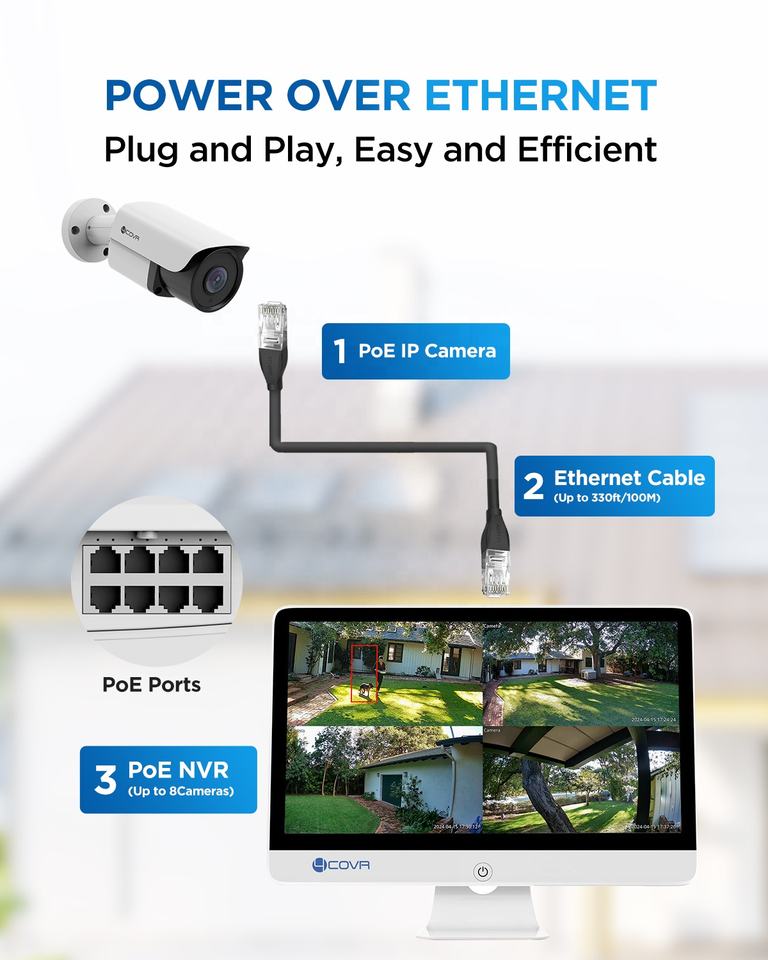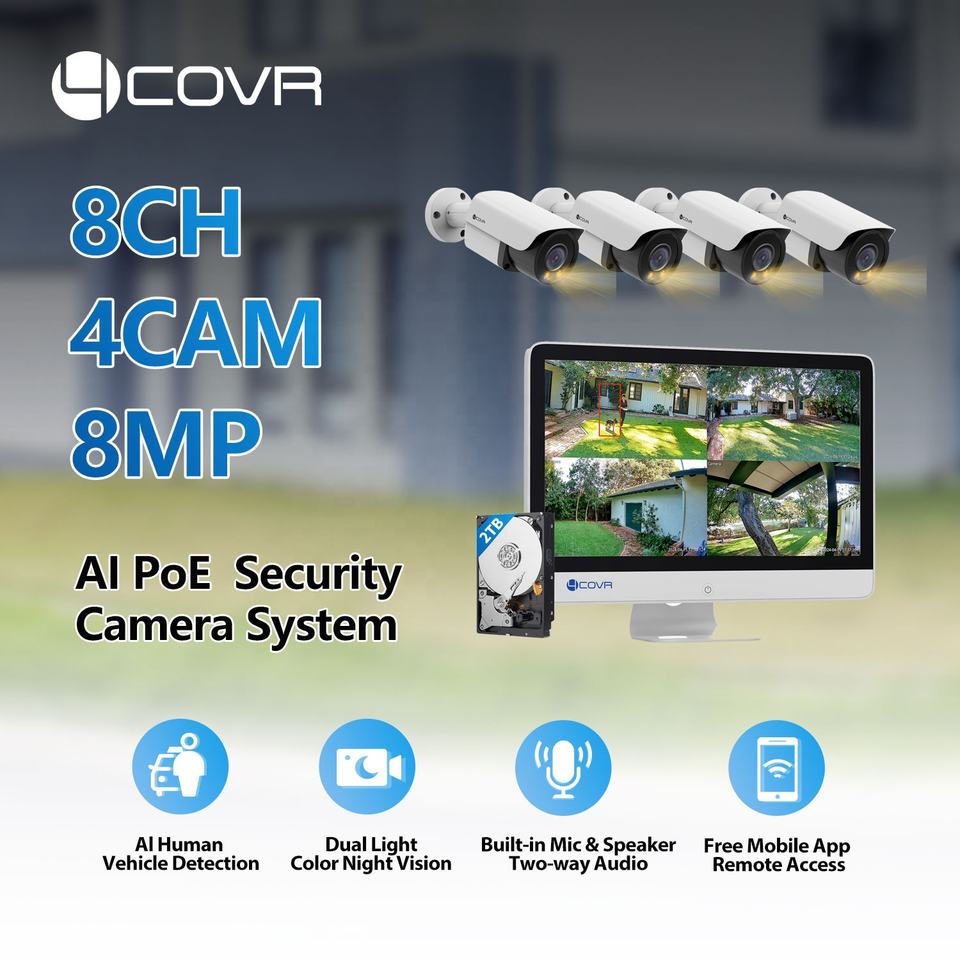 Système de caméra CCTV 4COVR 8 canaux PoE NVR, vision nocturne couleur 4K IP, audio bidirectionnel, moniteur LCD AI, kit NVR 8MP pour boutique et maison