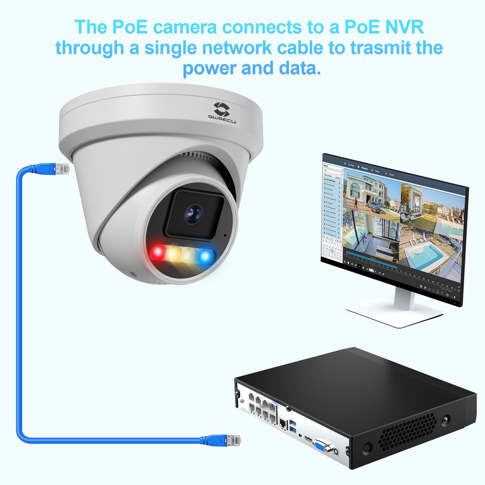 Caméra dôme IP PoE de sécurité extérieure GWSECU 8MP avec IA, dissuasion active, alarme, vision nocturne couleur, audio bidirectionnel, CMOS, pour la maison