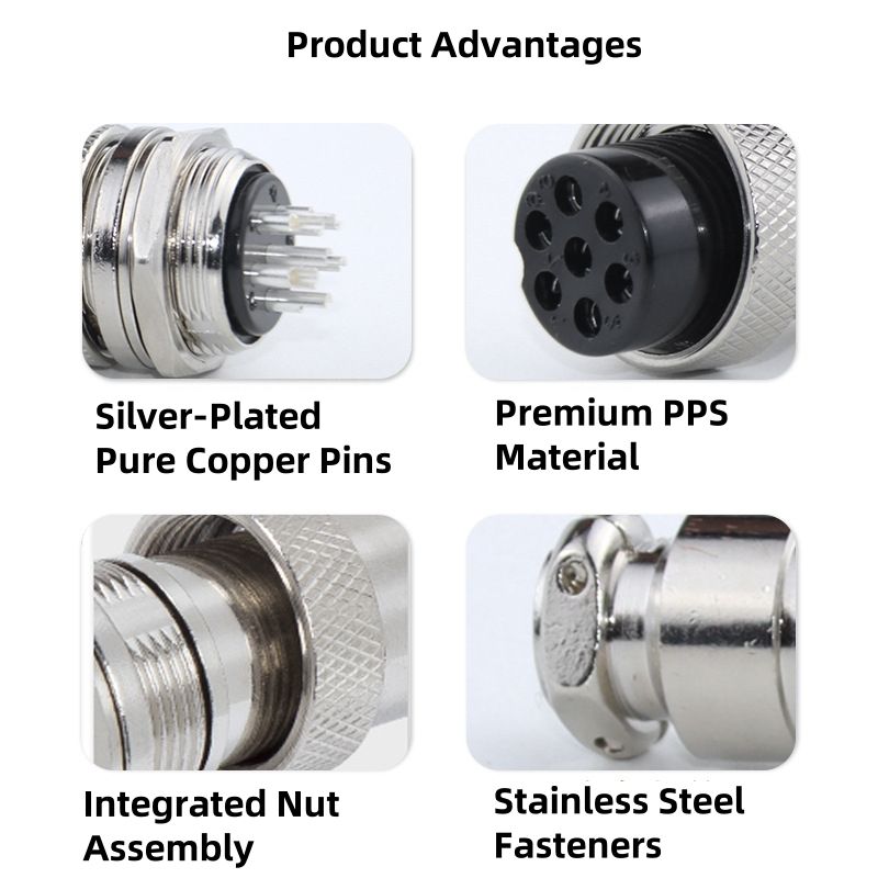 Connecteur Circulaire GX16 2P 3P 4P 5P 6P 7P 8P 9P 10 Broches, Prise et Fiche Aviation, Écrou Hexagonal, Contacts Plaqué Argent, Boîtier PPS