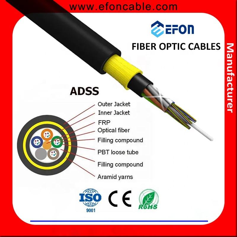 GYFXTY Câbles à fibres optiques ADSS 200 Span 2 4 6 8 12 24 48 96 Core Simple/Double Jacket Outdoor ADSS ASU Fibre Optique Cable