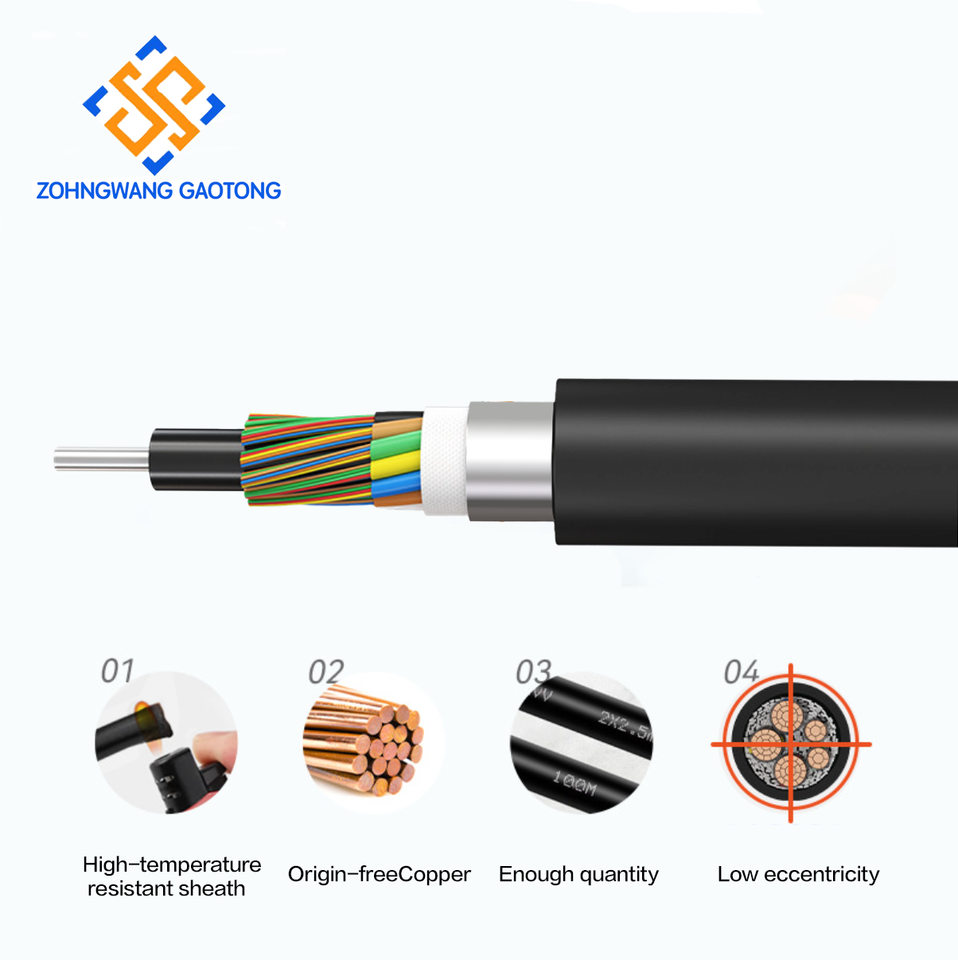 Câble à fibres optiques toronné GYTA pour extérieur, blindage en aluminium, gaine en PE, 14 AWG, étanche, enterrable directement, aérien