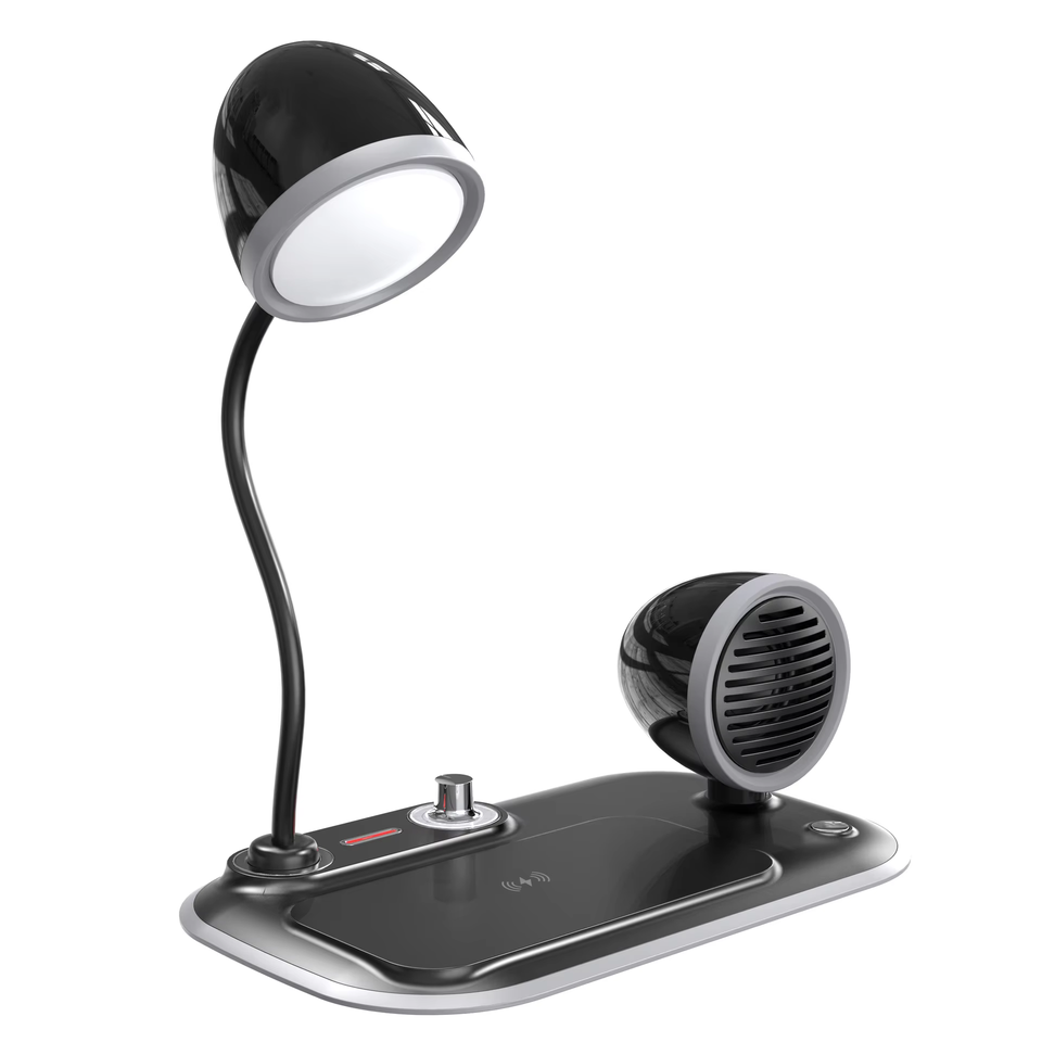Lampe de bureau rétro alimentée par GaN avec chargeur sans fil, haut-parleur Bluetooth et réveil, LED protectrice des yeux, port Type-C pour iPhone et Android
