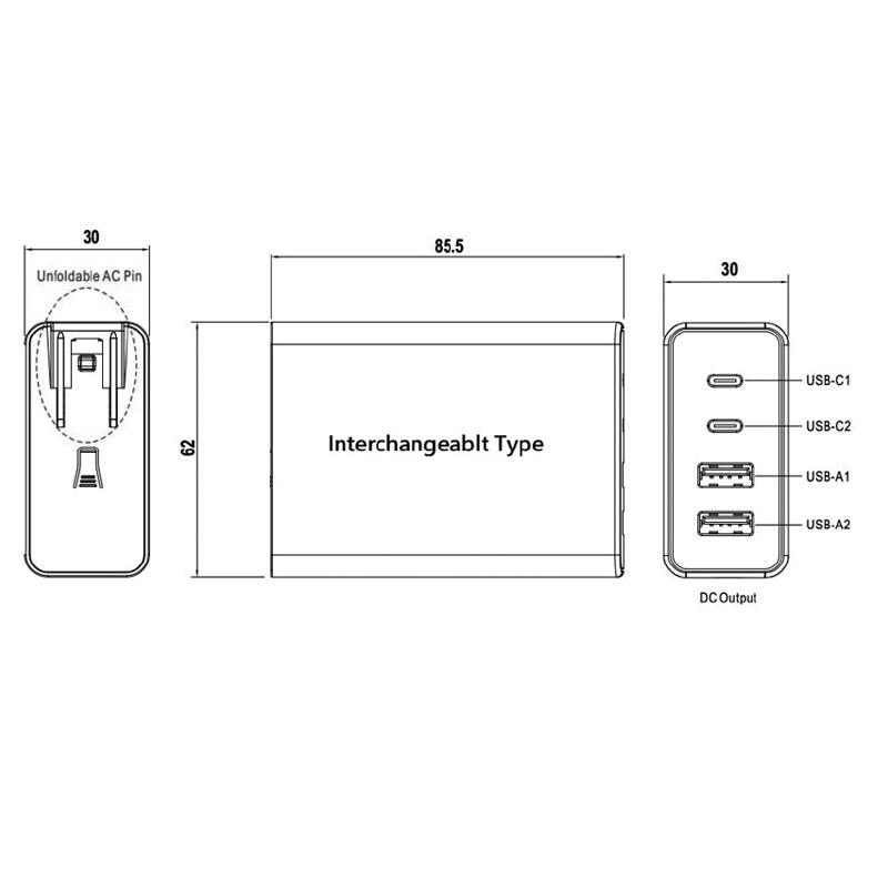 Chargeur mural GaN Tech 100W PD 2 USB-C 2 USB-A