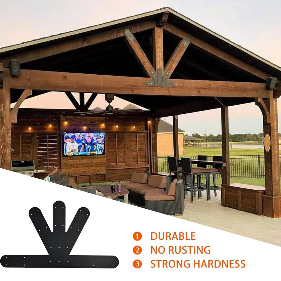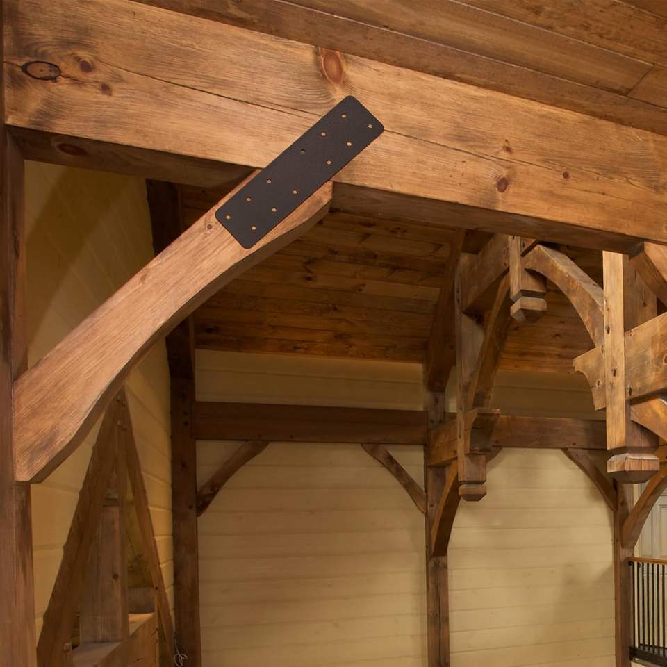 Plaque de pignon, support de connecteur en treillis enduit de poudre noire poutre en bois fixe, plaque de pignon décorative