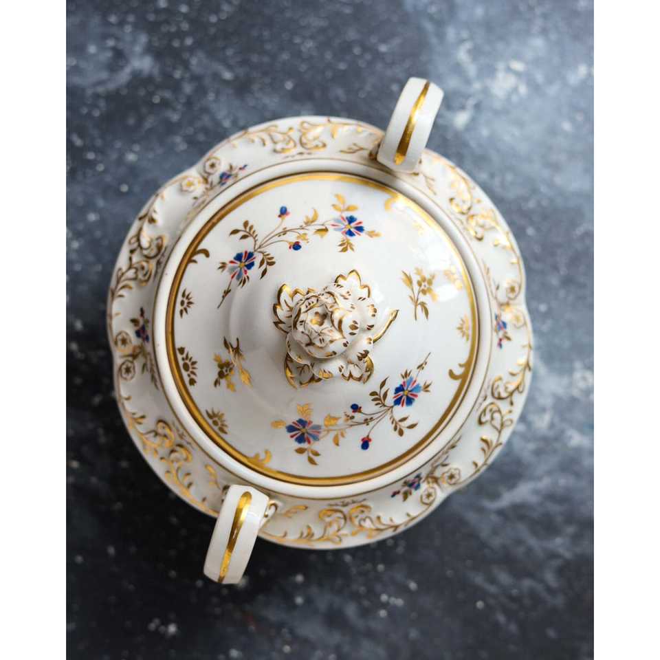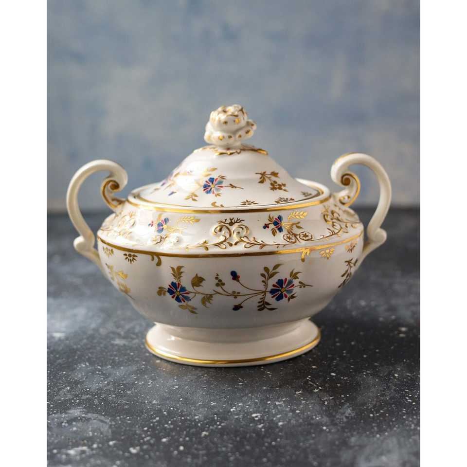 Gabriella P. Pot à sucre en porcelaine anglaise de la fin du XVIIIe siècle, style géorgien, décorations dorées à motif de pâquerettes pour restaurants
