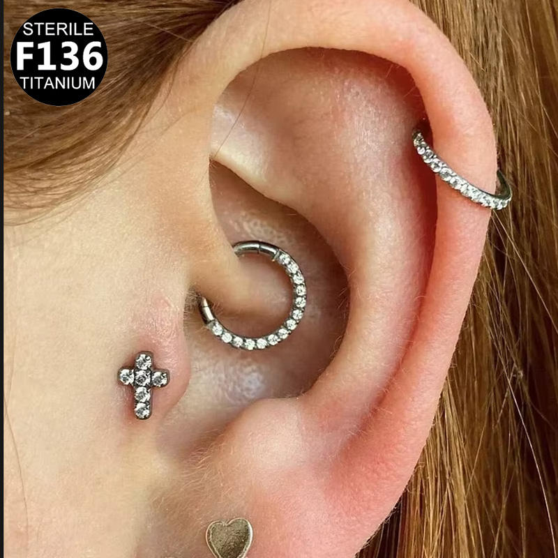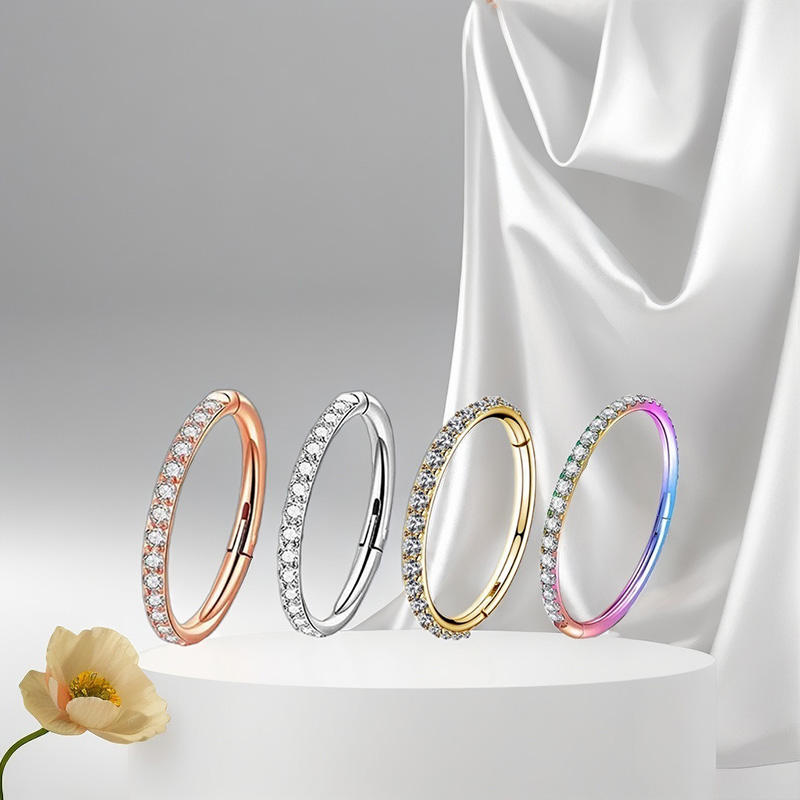 Gaby Bijoux de piercing en titane ASTM F136 pour cartilage, anneaux de Daith et Hélix, segment articulé, anneau de mode avec zircone cubique transparente