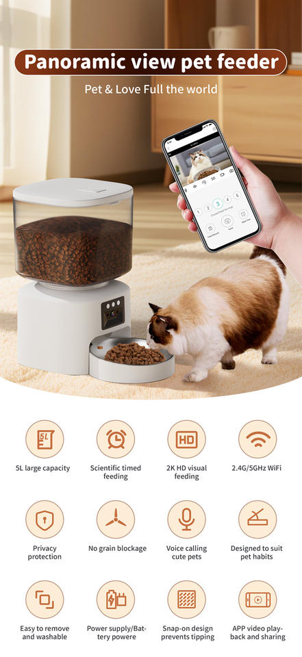 Distributeur automatique de nourriture pour animaux de compagnie Gaby avec caméra HD, nouveau distributeur de nourriture pliable grande capacité pour chats et chiens