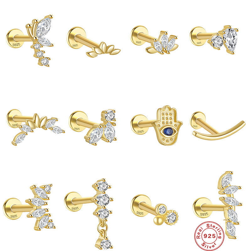 Nouveauté Gaby : Bijoux de piercing interne pour l'oreille, zircon scintillant, argent S925, boucles d'oreilles pour cartilage, vente en gros de bijoux de piercing corporel
