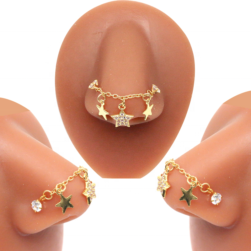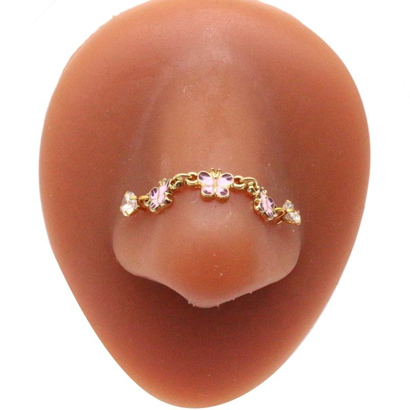 Anneau de nez en chaîne papillon Gaby, nouveau design, en gros pour femmes, piercing, pont de nez étoile papillon, bijoux de nez en gros avec chaîne