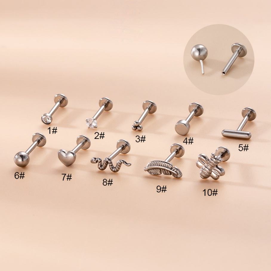 Bijoux de piercing pour oreilles Gaby, sans vis, en acier inoxydable plaqué or, zircon, labret, tragus, hélix, clous à dos plat, vente en gros