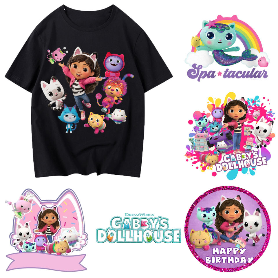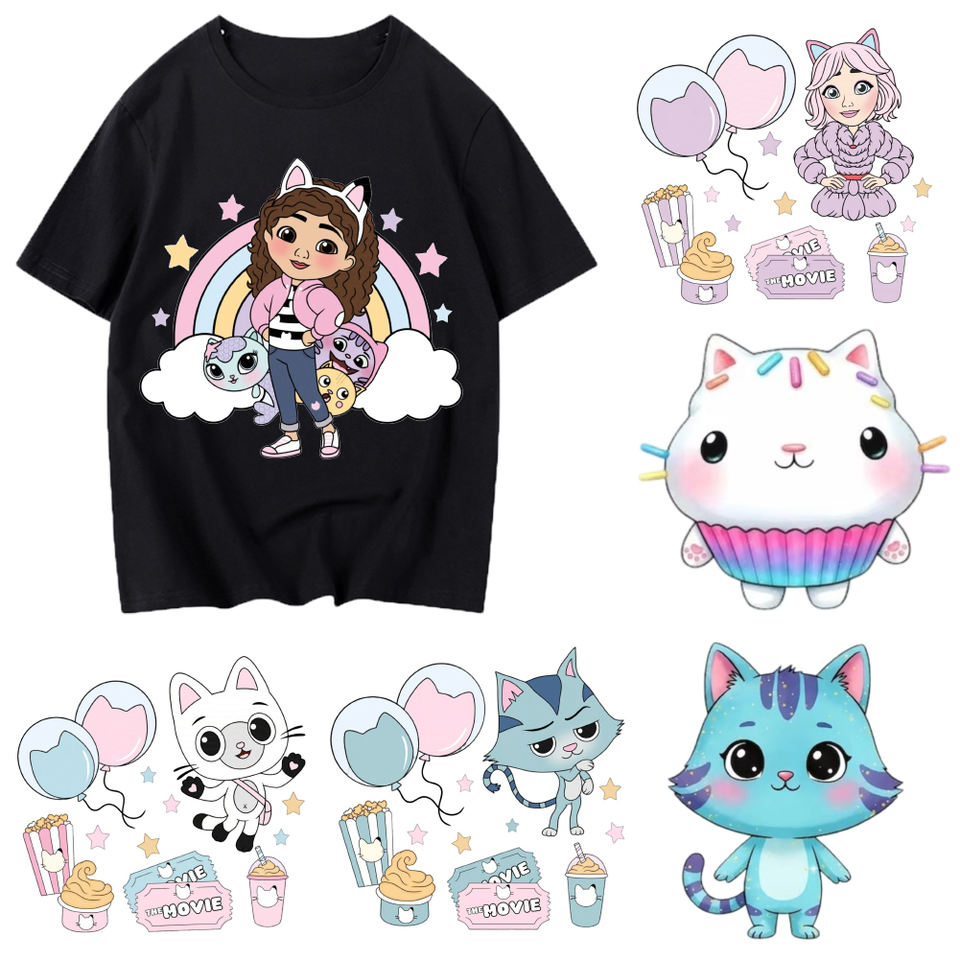 Autocollant thermocollant en vinyle DTF à motif de dessin animé Gaby Cat pour T-shirts, sweat-shirts, décalcomanie en vinyle DIY, décalcomanie initiale