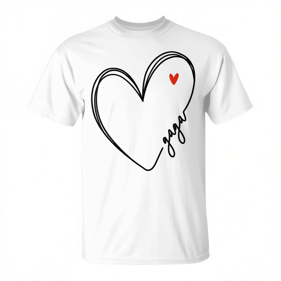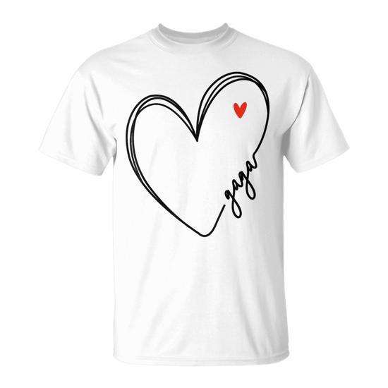 T-shirt Gaga Heart Design pour femmes et filles, col rond en coton blanc