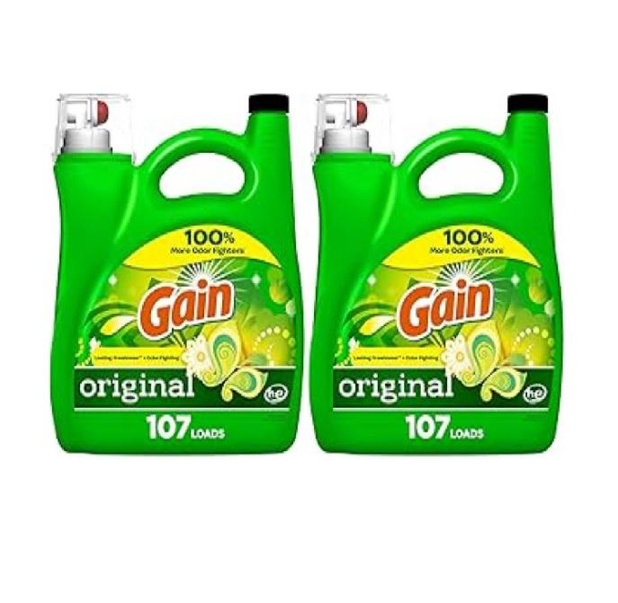 Lessive liquide et adoucissant Gain Aroma Boost, parfum original, 184 fl oz, 128 lavages, compatible HE, meilleur rapport qualité-prix