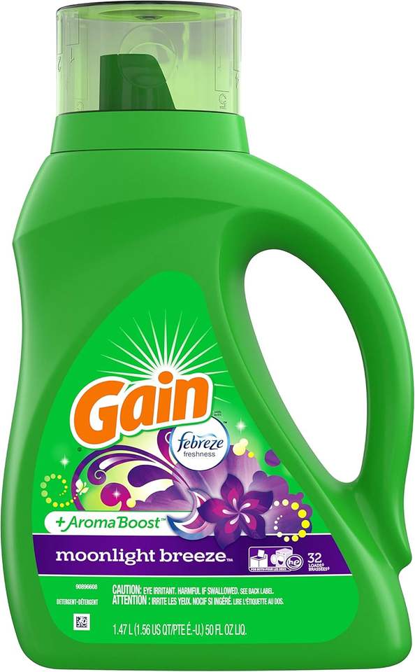 Détergent à lessive liquide Gain, parfum Brise de lune, 46 fl oz, 32 brassées, fraîcheur + combat contre les odeurs, haute efficacité