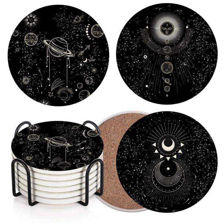Ensemble de sous-verres en métal gravés avec des étoiles de la galaxie, motif inspiré du ciel nocturne cosmique pour la maison et les bars, vente en gros